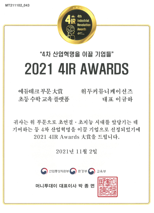 2021 4IR AWARDS 대상 페이지 정보 작성자 WeDu 댓글 0건 조회 11,152회 작성일 21-12-31 13:01 본문 2021-11-02 2021 4IR AWARDS 대상 머니투데이 List Previous2021 소년한국 우수 어린이 도서 22.01.06 Next2020 소년한국 우수 어린이 도서 선정 21.12.31