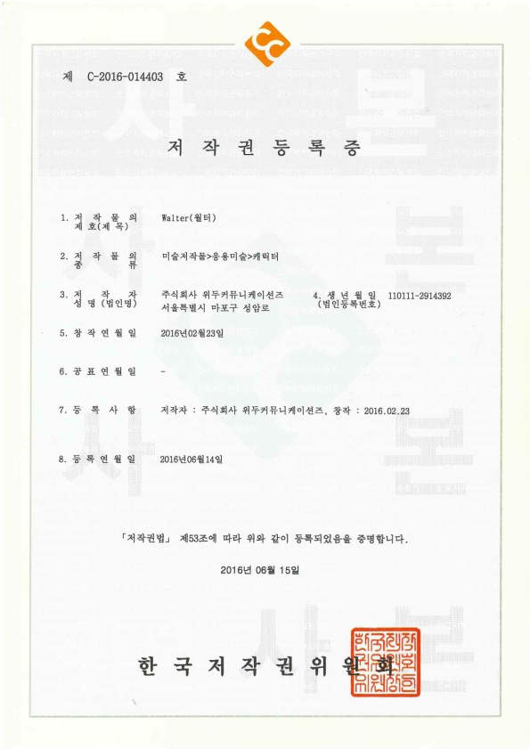 [한국/저작권] 월터 페이지 정보 작성자 WeDu 댓글 0건 조회 6,321회 작성일 19-05-30 19:09 본문 2016-06-15 저작권 C-2016-014403 월터 / 미술저작물>응용미술>캐릭터 List Previous[한국/저작권] 파벨 19.05.30 Next[한국/저작권] 필립 19.05.30