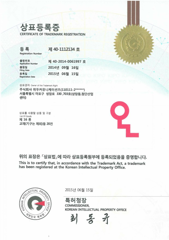 [한국/상표] OLL 16류 페이지 정보 작성자 WeDu 댓글 0건 조회 6,490회 작성일 19-05-30 18:59 본문 2015-06-15 상표 제 40-1112134호 16류 List Previous[한국/상표] OLL 41류 19.05.30 Next[한국/상표] OLL 09류 19.05.30